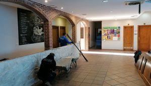 El Ayuntamiento de Villanueva de la Torre está reformando la Zona Joven de la localidad para adecuarla a su uso original y, a la vez, habilitar más espacios que sirvan para la formación y entretenimiento y ocio de la juventud. Así, en el hall de la instalación se está procediendo a derribar la barra que no tenía uso desde hace años, para tener más espacio disponible. La intención es aprovechar la mayor superficie de dicho espacio para instalar más elementos de juego para las chicas y chicos de Villanueva de la Torre, como un billar.