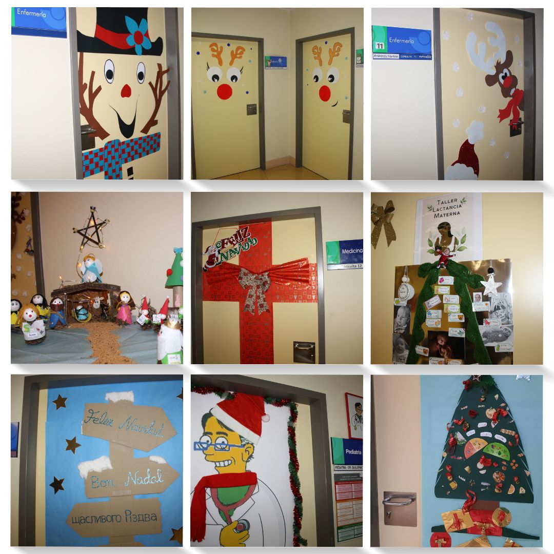La decoración navideña de cada una de las puertas de las consultas del Centro de Salud “Cuenca I”, junto con nacimiento, árbol y típicos muñecos de nieve y renos, ha logrado el primer premio en su categoría por su originalidad: cada una de las puertas de las consultas del centro de salud ha sido decorada esta Navidad de forma diferente y para ello se han utilizado desde temas de educación sanitaria, hasta mensajes de agradecimiento y reconocimiento las mamás que han participado en la clases de preparación al parto en el centro o mensajes de concordia y felicitación en diferentes lenguas, incluida la ucraniana.