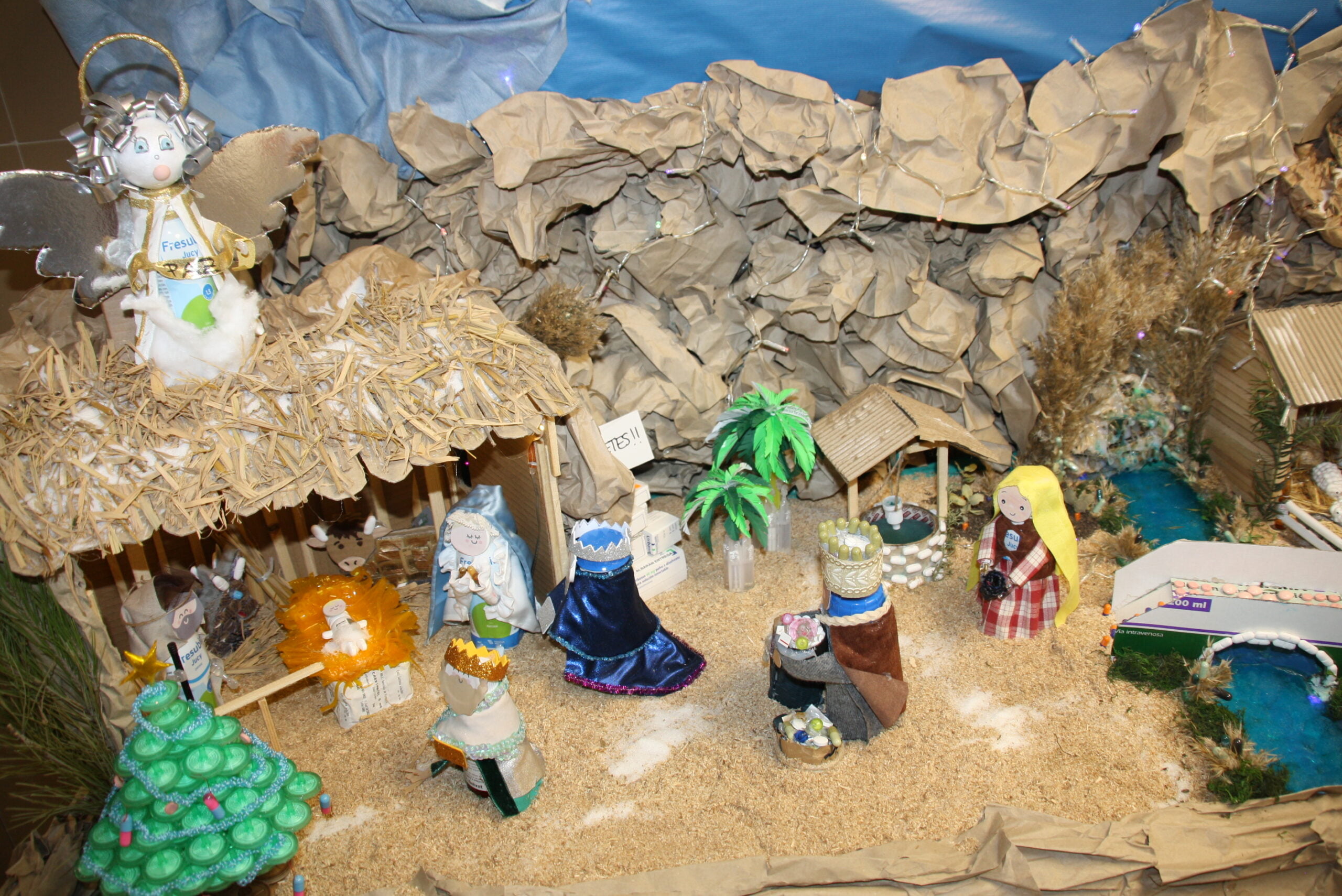 En el tercer premio de belenes, montado en la sala de estar del personal del Servicio de Quirófano, el jurado pone en valor los materiales sanitarios reciclados para la creación las figuras.