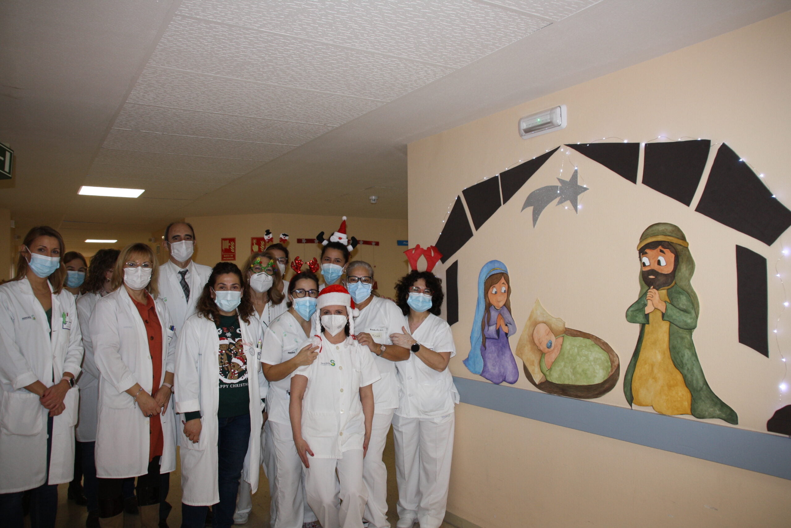 El segundo premio de decoración ha sido para la planta 6ª planta de hospitalización, por el valor del trabajo desarrollado para la decoración de los pasillos y control de la planta con motivos navideños, además de un belén confeccionado específicamente para decorar las paredes, casi a tamaño real y “con la dulce expresión de los dibujos”, destaca el jurado.