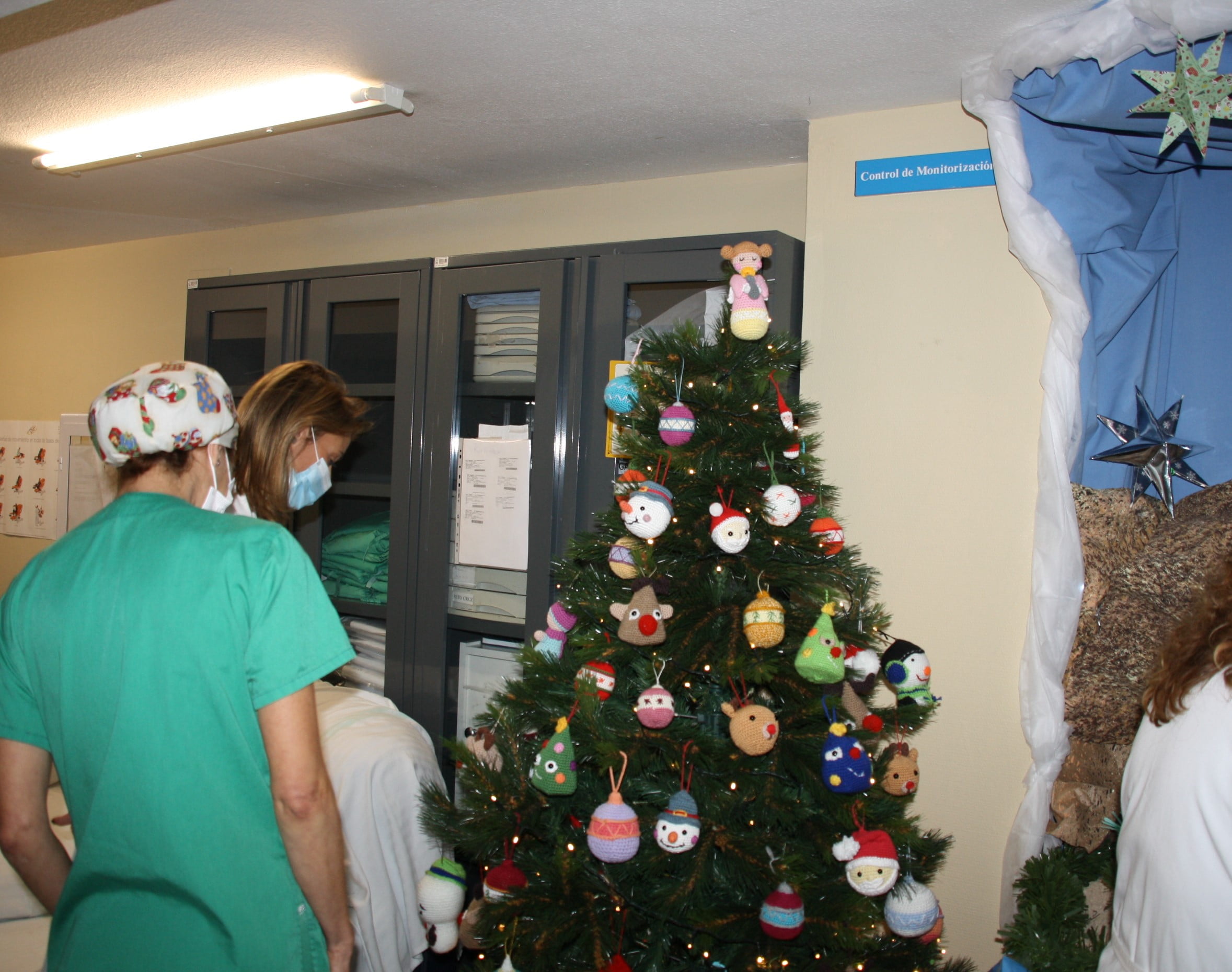La originalidad de las figuras decorativas de ganchillo y amigurimi, tendencia o moda japonesa que ha llegado también al árbol de Navidad instalado en el servicio de Partos, ha sido reconocida con el tercer premio en esta categoría.