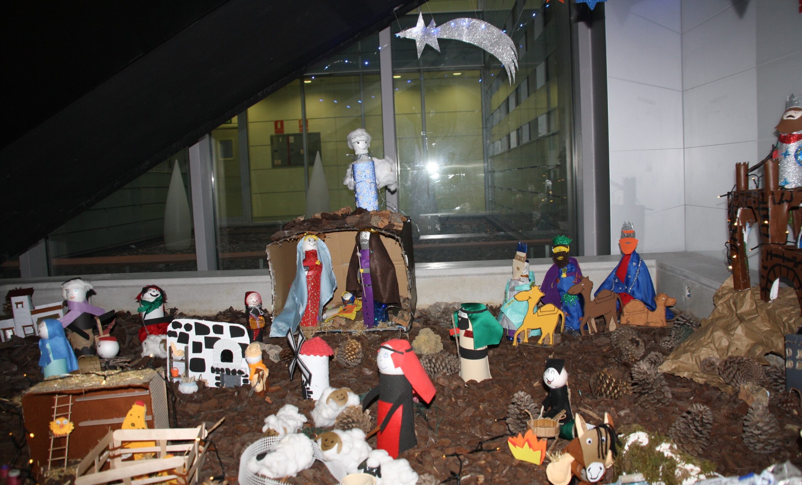 La segunda de las menciones especiales del jurado es para el Belén del Hospital de Día de Salud Mental instalado en el hueco de la escalera del CECU y del cual son autores tanto los profesionales como los pacientes. En este caso el jurado ha valorado que cada año se superan y suman más detalles a la composición.