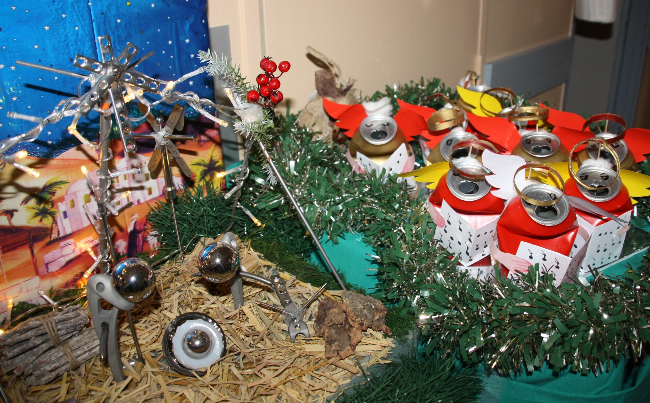 Las integrantes del jurado también han decidido otorgar este año dos premios más como menciones especiales. Una de ellas para el Servicio de Traumatología de la planta 3ªA de hospitalización por la originalidad del impactante belén en el que han reutilizado prótesis de cadera, placas y tornillos, por el uso de latas recicladas para su original coro o incluso la instalación de un árbol navideño con materiales reciclados propios de la planta de hospitalización