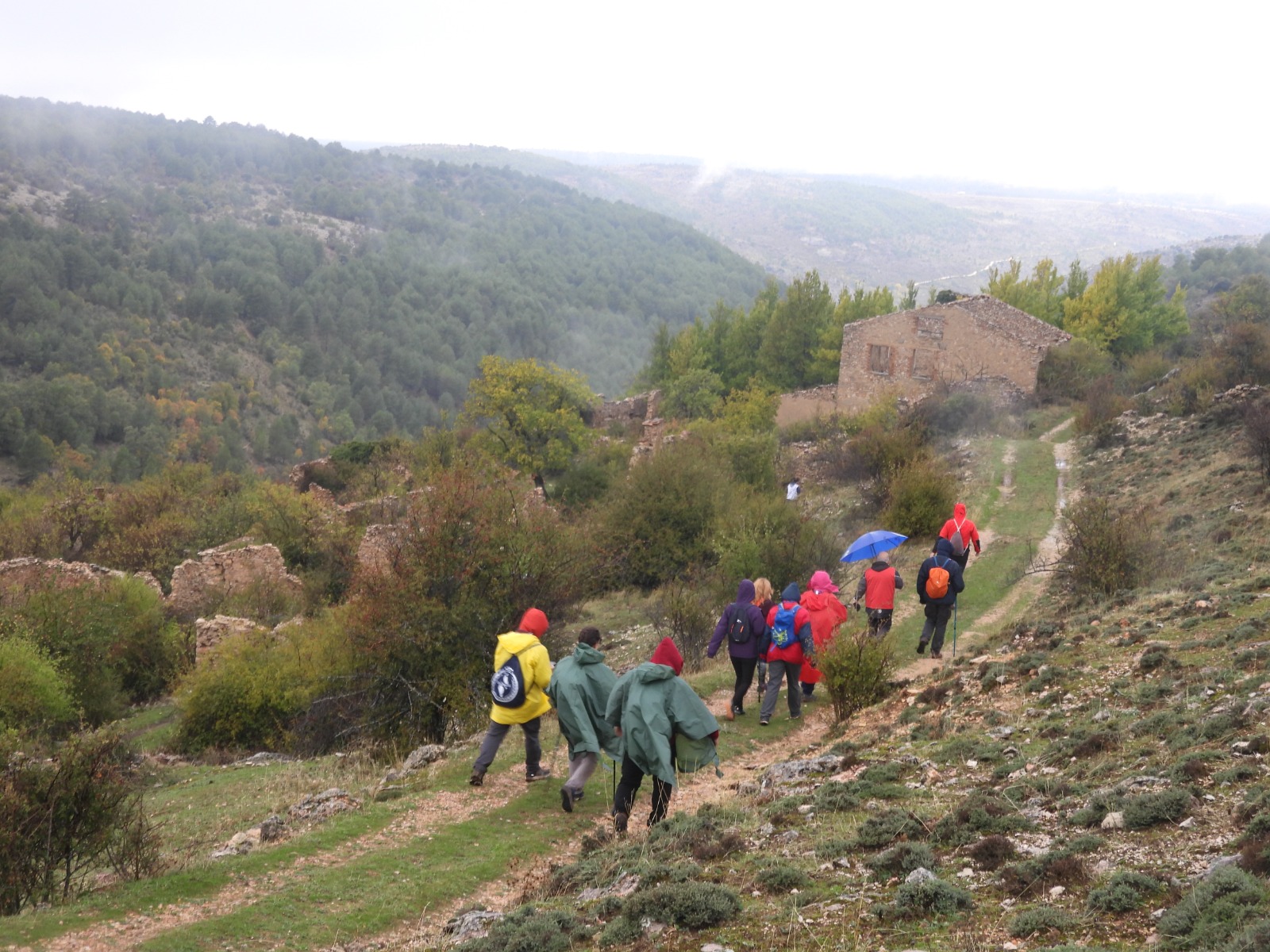 Antes de llegar a Valsalobre pasaron por un lugar tan mágico como las ruinas de la localidad de Valtablado de Beteta. Esta población, ubicada en la ladera de un monte a 1400 metros de altitud, está deshabitada desde 1974, cuando tras su expropiación se marcharon sus últimos habitantes. En Valsalobre, el bar de la localidad permitió a los senderistas refugiarse al calor de la estufa, en ese rato del almuerzo que la lluvia aprovechó para caer con más fuerza y seguir calmando la sed que tiene la Sierra, tras el largo periodo de sequía que ha sufrido.