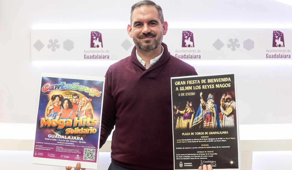 El concejal de Festejos del Ayuntamiento de Guadalajara, Santiago López Pomeda, ha presentado hoy algunas de las actividades más esperadas de la programación navideña, que combinan ocio, tradición y solidaridad, comenzando por una de las grandes novedades de este año que llegará como gran colofón de la programación navideña, el 6 próximo de enero de 2026 a las 18:00 horas, con el espectáculo del Grupo Cantajuego en la Plaza de Toros.