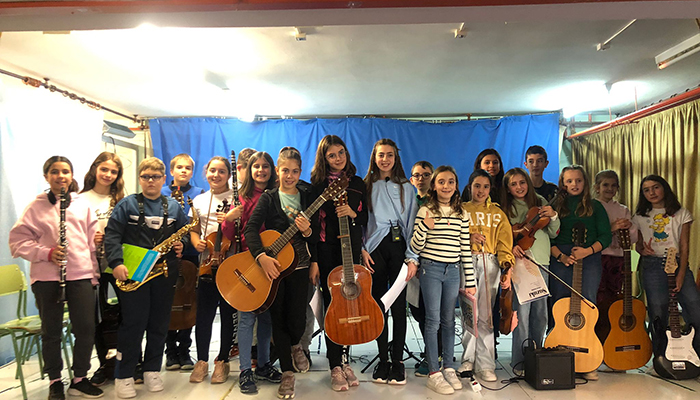 El CEIP “San Fernando” de Cuenca celebra Santa Cecilia con Festimúsica 23Así, los cerca de trescientos niños que están matriculados en este centro acudieron al salón de actos del centro en dos tandas. En la primera de ellas, que tuvo lugar a las 10:30 h., actuaron los peques de 2º, 3º y 4º. Tres alumnos de 6º curso, Julia, Marco e Iván, fueron presentando las partituras y los pequeños músicos protagonistas. Estos fueron Rubén (violín), Adrián (clarinete) y Alex (piano), de 2º A y B, María (violonchelo), Flavia (guitarra) y Carmen (acordeón), de 3º A y B, Alba (flauta travesera), Adriana (flauta de pico), Emma, Claudia, Lucía, Adriana, Iria y Martina (piano), de 4º A y B.