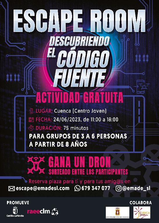 El Centro Joven acoge este sábado el Escape Room ‘Descubriendo el código fuente’, una divertida actividad gratuita promovida por la Viceconsejería de Medio Ambiente de la Junta de Comunidades de Castilla-La Mancha y por RAEE-CLM con la colaboración del Ayuntamiento de Cuenca.