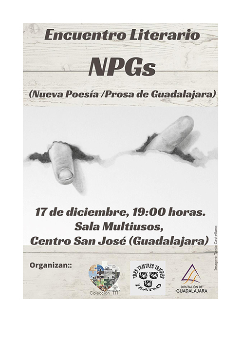 La sala multiusos del Centro San José acogerá esta tarde, a partir de las 19 horas, un Encuentro Literario en torno a la iniciativa NPG (Nueva Poesía, Nueva Prosa y Nueva ePistología de Guadalajara), que desde 2021 está desarrollando la Colección TTT con el apoyo de la Diputación de Guadalajara.