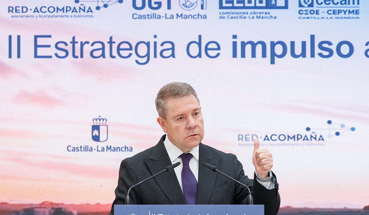 e del Ejecutivo regional hacía este anuncio en el marco de la firma de la II Estrategia del impulso al trabajo autónomo que ha tenido lugar en la Casa de la Cultura de Tarazona y en la que han tomado parte agentes sociales y asociaciones de autónomos de Castilla-La Mancha. En este contexto, junto a la consejera de Economía, Empresas y Empleo, Patricia Franco, el presidente ha destacado la importante labor que desempeña el sector de los autónomos de esta región y ha reconocido que firmas como la llevada a cabo esta mañana “son muy importantes para que los ciudadanos perciban que en Castilla-La Mancha miramos a largo plazo”.