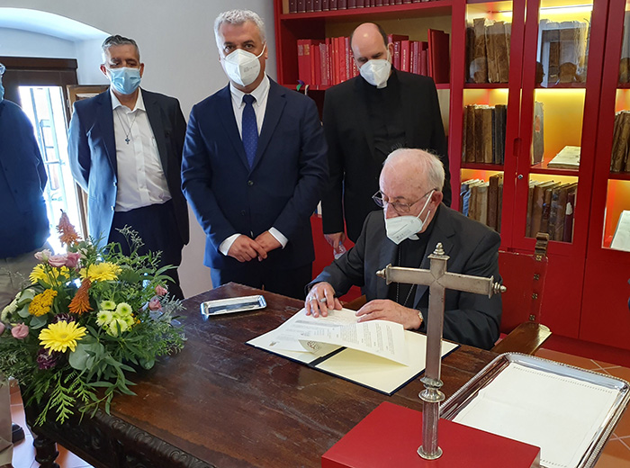 El presidente de la Diputación de Guadalajara, José Luis Vega, y el obispo de la Diócesis de Sigüenza-Guadalajara, Atilano Rodríguez, han firmado un nuevo convenio de colaboración entre ambas entidades para la rehabilitación de iglesias de la provincia durante el ejercicio 2021. La firma se ha producido en el archivo del recién inaugurado Museo Parroquial Mendocino de Mondéjar.