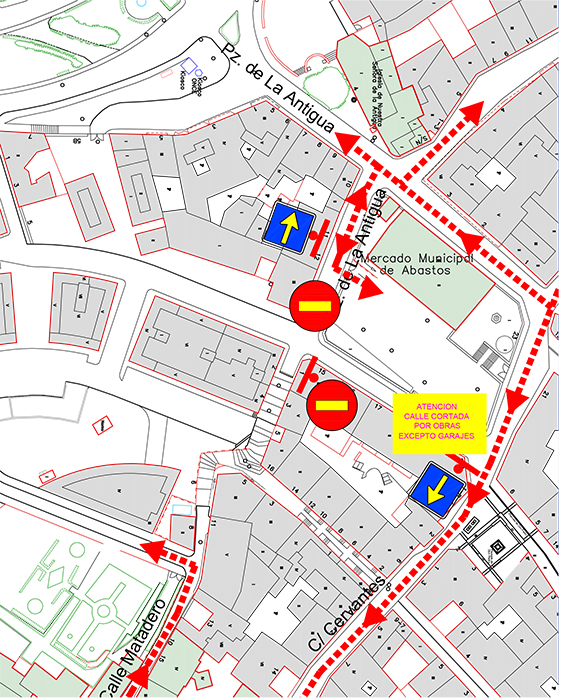 – El resto de circulación se mantiene como hasta ahora, siendo la C/ Cervantes de subida hacia la C/ Matadero y a la C/ Juan Bautista Topete.