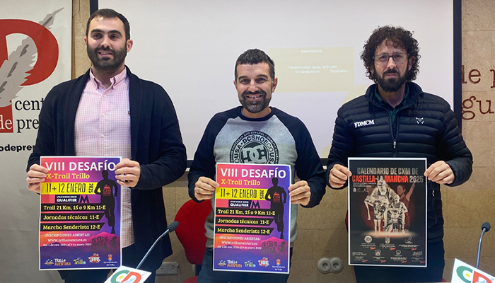 El Desafío X-Trail Trillo 2025 inaugurará la temporada de carreras por montaña de Castilla-La Mancha el próximo 11 de eneroEn la mañana de ayer, el alcalde de Trillo, Jorge Peña, el responsable del Área de Carreras por montaña de la FDMCM, Ángel Gómez Peñalver, y el gerente de TrilloAventura y organizador de la prueba, Rubén Martínez Obispo, presentaron las novedades de esta octava edición del Desafío X-Trail en el Centro de Prensa de Guadalajara.