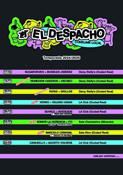 El Despacho sigue comprometido con su misión de impulsar la música en vivo en Ciudad Real y el resto de La Mancha y continuará organizando eventos que destaquen el talento de la región. De momento, ya han anunciado nuevas fechas para la temporada 2024/2025 en su cuenta de Instagram, confirmando a bandas y artistas tan diferentes como Somos La Herencia, Marcelo Criminal y Vermú, entre otros.