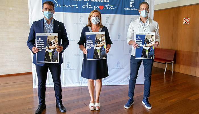 La consejera ha estado acompañada en esta rueda de prensa por el director general de Juventud y Deportes, Carlos Yuste, y el árbitro castellanomanchego de la Primera División del Fútbol, Javier Alberola.