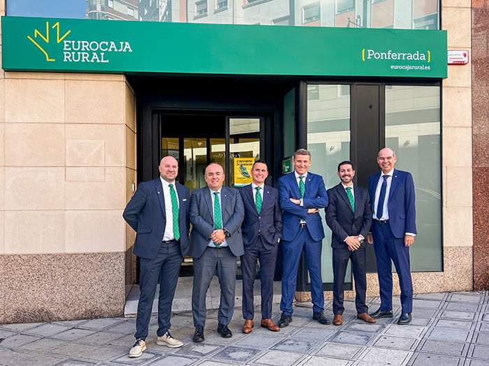 Víctor Manuel Martín López ha estado acompañado en esta visita por el director de la División de Negocio, Enrique Muñoz Sánchez; el director de la División Financiera, Ignacio Naranjo Posada; el director de la oficina de Ponferrada, Miguel Ángel Iglesias Fernández; y los gestores comerciales de la misma, Nicolás Álvarez Caurel y Francisco Javier Fernández Fernández.