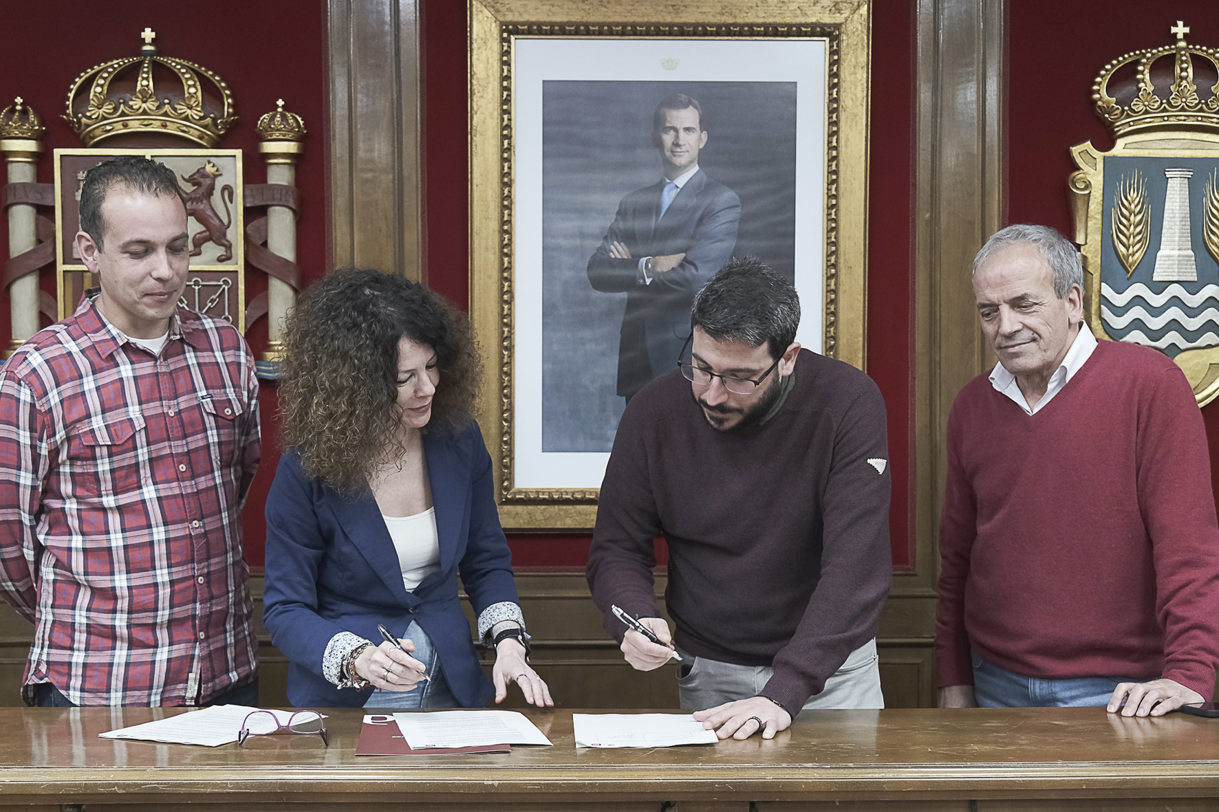 firma equipo gobierno marzo 24 01Con el acuerdo firmado este lunes, 4 de marzo, en el Salón de Plenos del Ayuntamiento de Azuqueca de Henares, se confirma que el Equipo de Gobierno formado por PSOE, con 9 concejales, e IU, con 2 ediles, continúa al frente del Consistorio –la corporación municipal se completa con 7 concejales del PP y 3 de Vox-. Miguel Óscar Aparicio (PSOE) y María José Pérez (IU) han suscrito el texto, en presencia de Julio García, secretario de la Ejecutiva Local del PSOE, y de Édgar Fernández, coordinador de la Asamblea Local de IU.