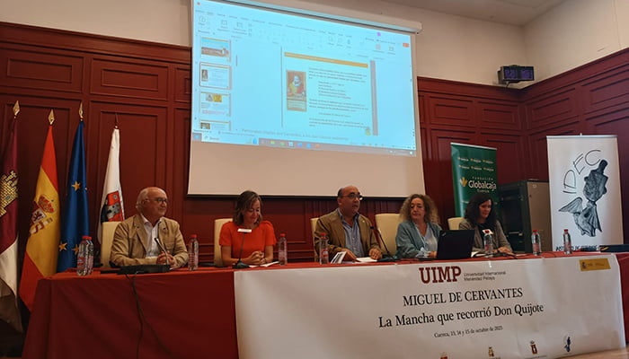 Una vez más, la Universidad Internacional Menéndez Pelayo, en su sede de Cuenca, volvió a realizar con éxito un Curso Internacional. En este caso, bajo la coordinación del historiador Miguel Romero, Cronista Oficial de la ciudad, se puso en valor la figura del escritor universal Miguel de Cervantes bajo el juicio crítico de numerosos investigadores de varios países como Canadá, Francia, Estados Unidos, México, Serbia o España que trataron aspectos divergentes dentro de esa multidisciplinaridad que un tema como éste exige. El teatro, el erasmismo, la dialéctica, el origen, los mapas dentro de una cartografía revisionista, los diálogos, el humanismo espiritual, los conceptos renacentistas, los personajes, el mundo onírico y las raíces conversas reunieron a un elenco de personalidades como Kennet Brown, Jana Stejanovick, David Greenwood, Alicia Villar, Pilar Fernández Cañadas, Edward Paiewonoski, Emmanuel Marignó, Ana Luisa Baquero o Aurelio Vargas entre otros, quienes, bajo la coordinación del profesor Carlos Mata Indurain de la Universidad de Navarra (GRISO) o el experto en archivística Francisco Javier Escudero, mantuvieron el coloquio entre la realidad y la ficción de los episodios que El Quijote y Sancho han universalizado dentro del contexto más simbiótico y genérico de nuestros mundos literarios.