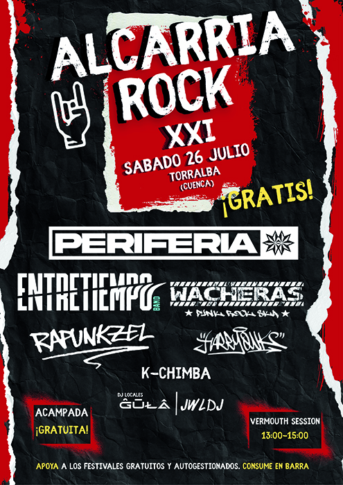 El emblemático festival Alcarria Rock se prepara para celebrar su vigésimo primera edición el próximo sábado 26 de julio en la localidad de Torralba, Cuenca. Fiel a su espíritu autogestionado y popular, el evento ofrecerá un año más tanto la entrada al recinto como la zona de acampada de forma completamente gratuita.