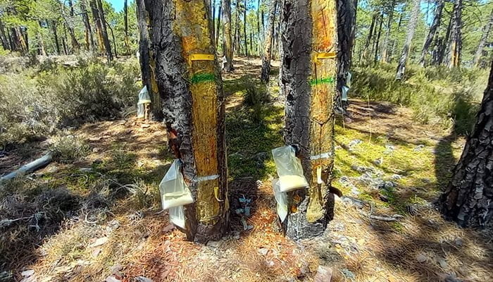 En esta primera campaña de experimentación, se observó que la pica mecanizada produjo menos resina que la pica tradicional: “en Gata un 9,14% menos; en Cuéllar un 35,10% menos; en Nieva un 30,53% menos; en Tardelcuende un 78,72% menos; en Huerta del Marquesado un 64,90% menos y en Tabuyo del Monte un 56,57% menos. Además, vimos que la pasta estimulante usada (pasta negra o preta) parecía producía daños en el árbol y parecía reducir la producción, por lo que para la campaña 2022 decidimos cambiar de estimulantes a pasta brasileña o pasta Cunninhgam (con menor porcentaje en ácido sulfúrico) a la vez que también introdujimos otras mejoras en la metodología”, explicó Moya.