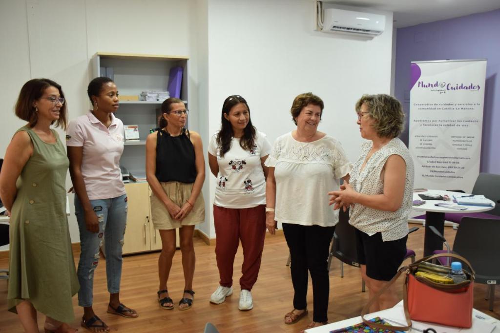 Mundo Cuidados es una cooperativa dedicada a la prestación de servicios de cuidados a domicilio y en instituciones, creada en el año 2022 y que cuenta, en la actualidad, con nueve socias trabajadoras y dos socias colaboradoras. En su objeto social incluye, también, la prestación de tareas de limpieza a particulares y empresas, y ha posibilitado la inserción laboral a través del autoempleo de mujeres procedentes de diferentes países, como Colombia, Venezuela, Ecuador o Guinea. Durante la visita, la directora general ha valorado la posibilidad que ofrecen las cooperativas y entidades de economía social como puerta de entrada al mercado laboral en la región, además de su capacidad para vertebrar económicamente el territorio regional y localizar la actividad en Castilla-La Mancha. “Mundo Cuidados es un ejemplo de cómo una decena de mujeres puede encontrar una vía de inserción en el mercado laboral a través de la economía social”, ha señalado Ana Carmona.