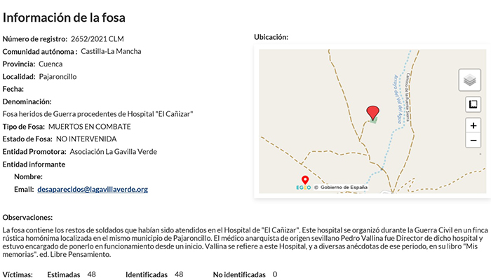 Además, el pasado mes de noviembre el Gobierno de España concedió una subvención de 14.000 euros a la asociación La Gavilla Verde que servirán para iniciar los trabajos de exhumación de dicha fosa.