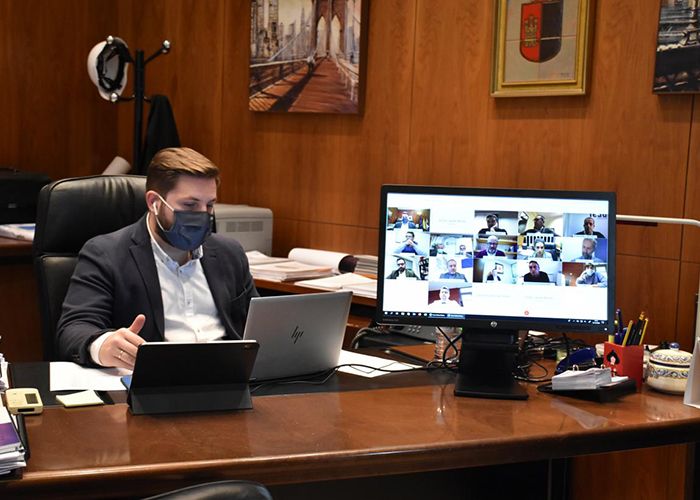 El consejero de Fomento, Nacho Hernando, se ha reunido, a través de videoconferencia, con la Federación regional de empresas constructoras (FERECO) en un encuentro al que también han asistido el director general de Planificación Territorial y Urbanismo, José Antonio Carrillo, y la directora general de Vivienda, Inés Sandoval.