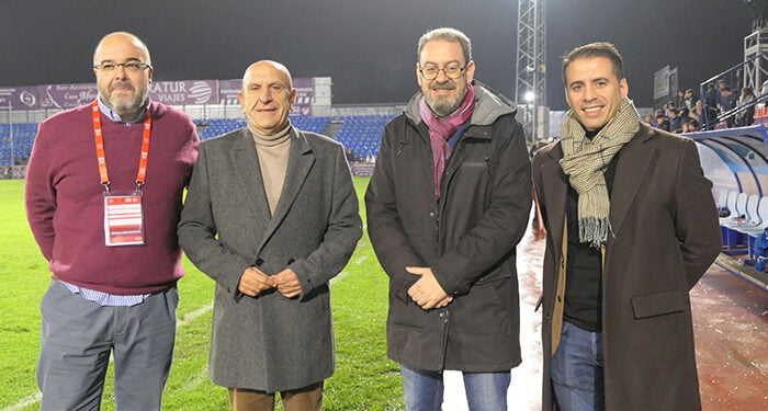 El director general de Juventud y Deportes, Carlos Yuste, ha felicitado al CD Guadalajara por el papel realizado en las eliminatorias de la presente edición de la Copa del Rey de Fútbol. Y es que, a pesar de caer derrotado anoche ante el Elche FC, los morados han dado la cara en esta competición eliminando en la primera ronda a la Ponferradina, club de Segunda División. Por otra parte, Yuste ha destacado el apoyo de la afición que, con más de 5.000 seguidores, llenó el ‘Pedro Escartín’ en un partido histórico, ya que ha sido la primera vez en los 75 años del club en que se ha enfrentado en partido oficial a un equipo de Primera División. El encuentro ha puesto el broche de oro a uno de los ejercicios más importantes de la historia del Deportivo Guadalajara, en que también se consiguió el ascenso a la actual categoría y en el que se ha estabilizado la situación económica de la entidad. A este partido también asistieron, entre otras autoridades, el delegado de la Junta de Castilla-La Mancha en Guadalajara, Eusebio Robles, y el presidente de la Diputación y el alcalde de la ciudad, José Luis Vega y Alberto Rojo, respectivamente.