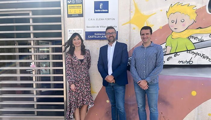 El Gobierno regional felicita al CRA ‘Elena Fortún’ por ser ejemplo en el desarrollo de un proyecto en la promoción de los valores europeosEl viceconsejero de Educación, Amador Pastor, ha felicitado en nombre del Gobierno regional al Centro Rural Agrupado (CRA) ‘Elena Fortún’ de Villar de Olalla (Cuenca), por haber sido reconocido por el Ministerio de Educación y Formación Profesional como uno de los centros que, a nivel nacional, han destacado a la hora de llevar a cabo un proyecto educativo en la promoción de los valores europeos. La experiencia que se desarrolla en este CRA en materia de ciudadanía global y derechos humanos ha sido expuesta en una jornada organizada por la propia Comisión Europea y el Ministerio, en la que han participado representantes técnicos de los Ministerios de Educación de varios países de la Unión Europea pertenecientes al Grupo de trabajo de Equidad y Valores, así como de otras entidades europeas. Amador Pastor ha alabado el trabajo que se desarrolla en las escuelas rurales de la Comunidad Autónoma, que son “piezas fundamentales para mantener vivos nuestros pueblos”. El viceconsejero ha sido recibido por el director del centro, Jose Ángel Lerma, y la jefa de estudios y una de las participantes en el encuentro con el Ministerio, Rebeca Collado.