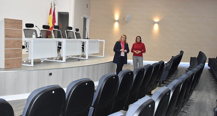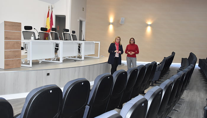 La delegada de la Junta en Cuenca, María Ángeles Martínez y la delegada provincial de Educación, Cultura y Deportes, Sonia Isidro, han visitado el salón para conocer estas mejoras en el salón que tiene capacidad para más de un centenar de personas.