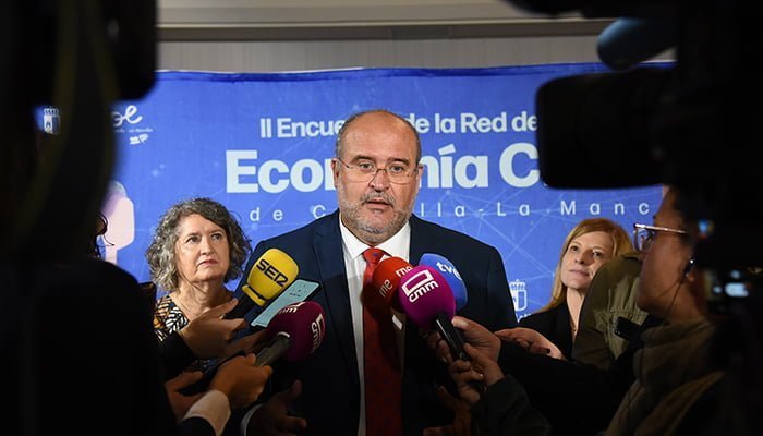 Martínez Guijarro ha asistido hoy a la inauguración del ‘II Encuentro de la Red de Agentes de Economía Circular de Castilla-La Mancha’ junto a la directora general de Calidad y Evaluación Ambiental del Ministerio de Transición Ecológica y Reto Demográfico, Marta Gómez; y la consejera de Desarrollo Sostenible, Mercedes Gómez, un evento que se enmarca dentro de los actos de la presidencia española del Consejo de la Unión Europea desarrollado en colaboración con el Ministerio para la Transición Ecológica y el Reto Demográfico (MITERD).