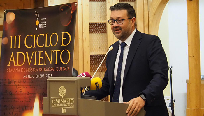 El consejero de Educación, Cultura y Deportes, Amador Pastor, ha destacado la celebración del Ciclo de Adviento como “raíz y esencia” de la Semana de Música Religiosa de Cuenca. Así lo ha puesto de manifiesto hoy durante la presentación de este evento que tendrá lugar en la ciudad de Cuenca del 5 al 9 de diciembre en diferentes enclaves de la capital conquense.