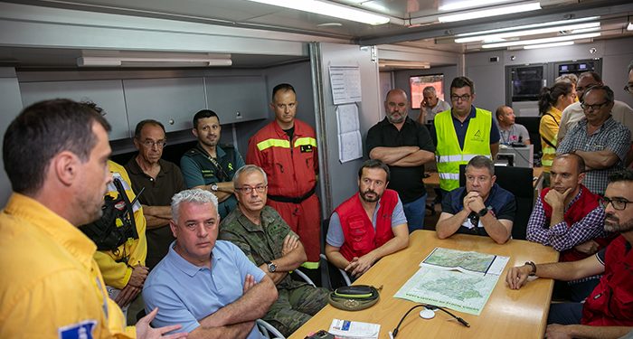 Junto al presidente García-Page y el consejero, también han asistido al PMA el presidente de las Cortes, Pablo Bellido; el director general de Medio Natural y Biodiversidad, Félix Romero; el delegado de la Junta en Guadalajara, Eusebio Robles; el presidente de la Diputación provincial, José Luis Vega; y los alcaldes de Casas de Uceda, y Valdepeñas de la Sierra, José Luis Rubio y José Luis Palmero, respetivamente. Además, dos técnicos del Plan Infocam del dispositivo regional, Pepe Almodóvar y Gregorio García, han sido los encargados de explicar la situación del incendio.