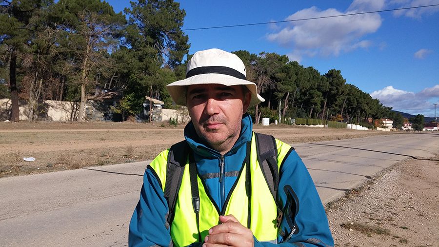Pedro es el monitor. Define el contacto animal, naturaleza, vereda, pastores y ganado como una segunda Facultad porque el conocimiento que se adquiere es enorme. Se pasan ecosistemas de todo tipo. Nosotros solo estamos una semana, pero, en esta semana, hemos pasado de los 1.500 metros de altitud a los novecientos y pico de este paraje, el Pinar de Jábaga. Quiero decir que salimos enriquecidos del Parque Natural de la Serranía de Cuenca con ese paisaje enorme de montes, valles, llanuras, pinos, pastos y vértigos como el del Barranco del Judío. Es increíble cómo bajan los animales y los pastores por una pendiente casi vertical. Tiene un valor enorme. Por algo ha sido declarada la Trashumancia Patrimonio Inmaterial. El poder asistir a esto es un lujo.