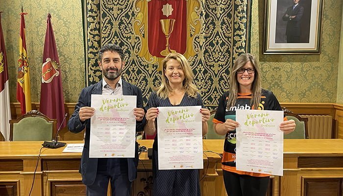 La concejala de Deportes, Charo Rodríguez, el director provincial de Amiab, Óscar Sillas, y la responsable de Actividades Deportivas de la entidad, Arantxa Granero, han presentado hoy la segunda edición de los Veranos Deportivos, que este año además será inclusivo.