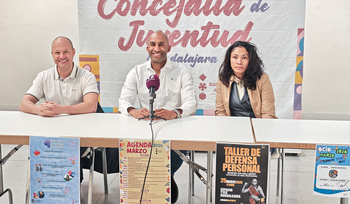 El concejal de Juventud del Ayuntamiento de Guadalajara, Armengol Engonga, ha presentado hoy la nueva programación del Mes de la Salud Juvenil, un proyecto ya consolidado que alcanza su tercera edición y que forma parte de los meses temáticos impulsados por la concejalía de Juventud desde hace dos años. Engonga ha estado acompañado por la luchadora profesional de MMA Karla Benítez y por Rubén Viejo, presidente de la Asociación Críticos y Emergencias, ambos implicados en actividades formativas dirigidas a jóvenes de la ciudad.