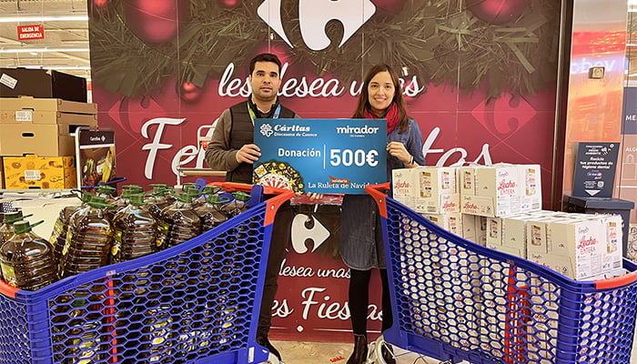 El Mirador de Cuenca dona 500 euros al economato de Cáritas Diocesana de CuencaEl Mirador de Cuenca ha donado 500 € a Cáritas Diocesana de Cuenca para la adquisición de alimentos para su economato. De esta forma, la entidad ha podido comprar productos de primera necesidad no perecederos, como aceite y leche, para que los usuarios en riesgo de exclusión social puedan adquirir artículos esenciales.