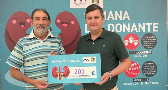 El gerente del centro comercial Mirador de Cuenca, Diego Varela, ha entregado al presidente de ALCER de Cuenca, Clemente Gómez, un cheque solidario por valor de 200 euros, correspondiente a la recaudación obtenida durante la Semana del Donante en el centro.