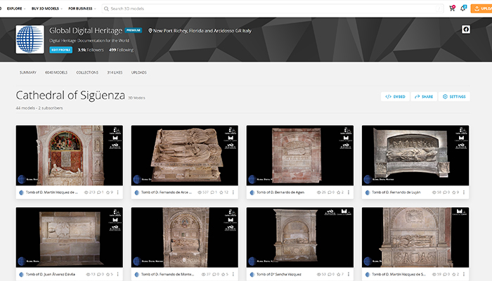 El modelo 3D del sepulcro de D. Fernando de Arce y Dª Catalina de Sosa, situado en la catedral de Sigüenza, ha sido incluido esta semana en el Top 10 de Patrimonio Cultural e Historia de la popular plataforma Sketchfab, la mayor del mundo en el campo del 3D.