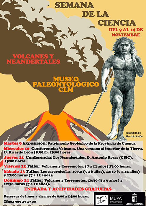 El Museo Paleontológico de Castilla-La Mancha celebra la Semana de la Ciencia y la Innovación con diversas actividades relacionadas con los volcanes y los neandertales. Exposición sobre el Patrimonio Geológico de Cuenca, talleres didácticos y charlas científicas, son algunas de las actividades programadas que se ofertarán entre los días 9 y 14 de noviembre, de forma gratuita a todos los públicos.