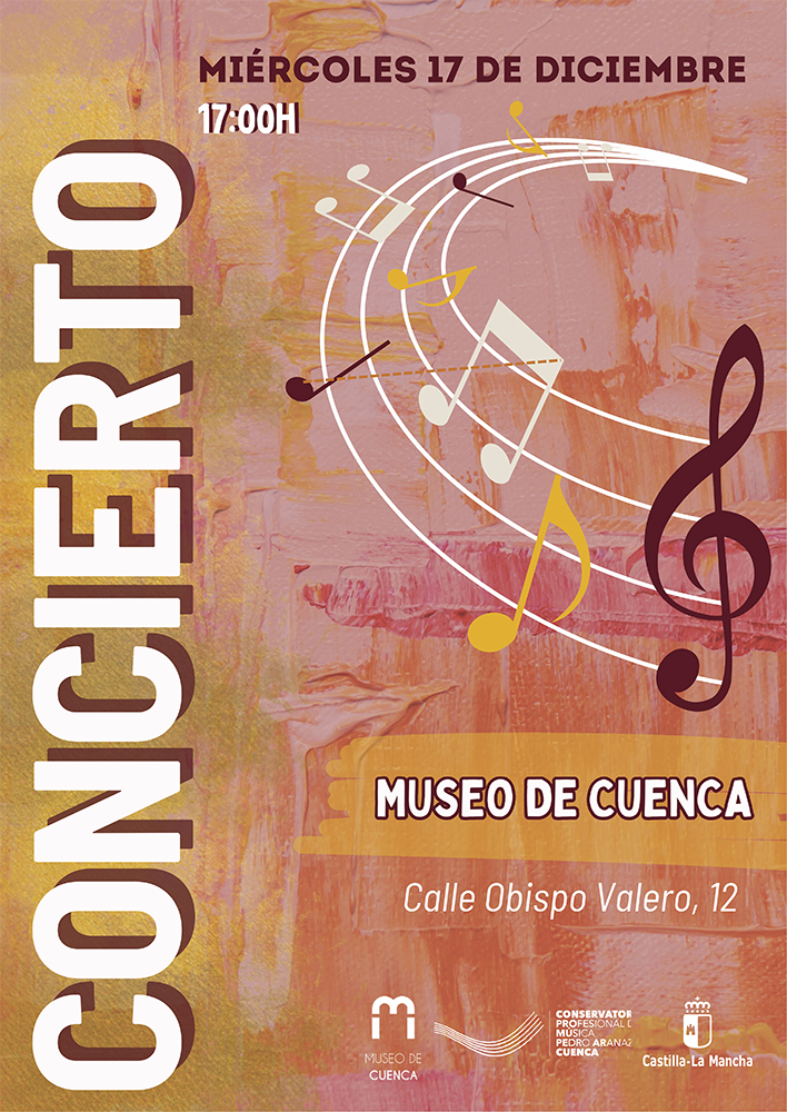 El Museo de Cuenca será el escenario de un concierto ofrecido por los alumnos del Conservatorio Profesional de Música “Pedro Aranaz”. El evento tendrá lugar en la Sala Segóbriga del museo el próximo miércoles, 17 de diciembre de 2025, a las 17:00 horas.