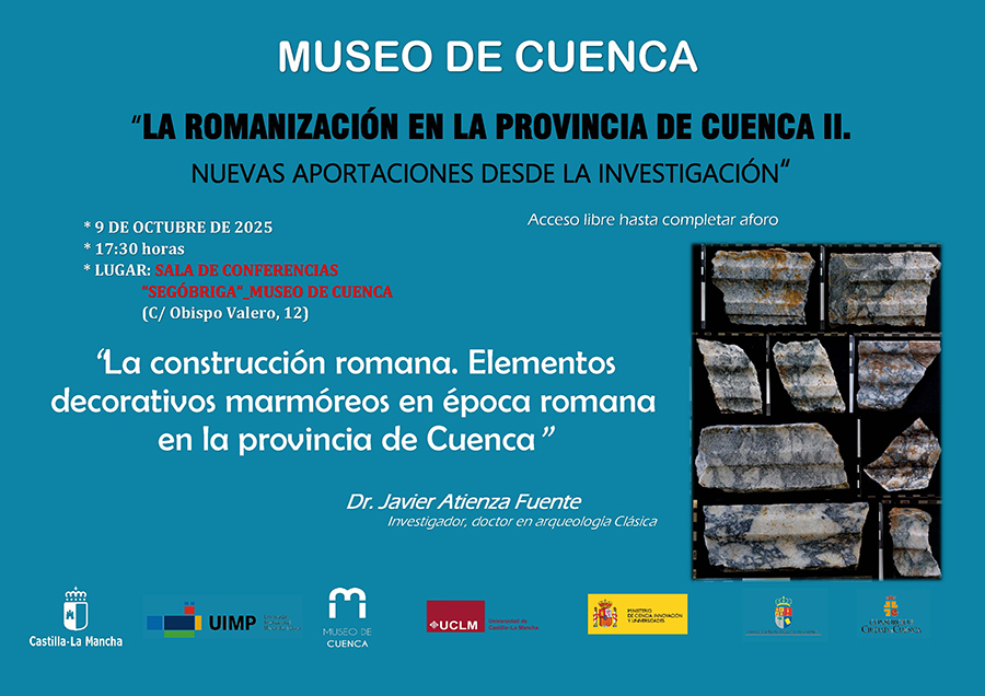 Dicha conferencia se impartirá el próximo jueves, día 9 de octubre de 2025, a las 17:30 horas en la SALA DE CONFERENCIAS “SEGÓBRIGA” – MUSEO DE CUENCA (C/ Obispo Valero, 12). Forma parte del ciclo “LA ROMANIZACIÓN EN LA PROVINCIA DE CUENCA II. NUEVAS APORTACIONES DESDE LA INVESTIGACIÓN“, que se impartirá en el museo durante el segundo semestre del año.
