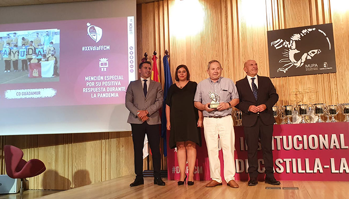 La viceconsejera de Cultura y Deportes, Ana Muñoz, ha asistido a la gala del XXV ‘Día Institucional del Fútbol de Castilla-La Mancha’, que se ha celebrado en el Museo Paleontológico de Castilla-La Mancha (Cuenca). En este acto, la viceconsejera, acompañada del director general de Juventud y Deportes, Carlos Yuste, ha lanzado un mensaje de felicitación para todos y todas las premiadas. En el mismo contexto, ha agradecido a la Federación de Fútbol regional todo el esfuerzo que realiza para que el deporte “por excelencia en nuestra tierra siga creciendo desde la base hasta el ámbito profesional”.