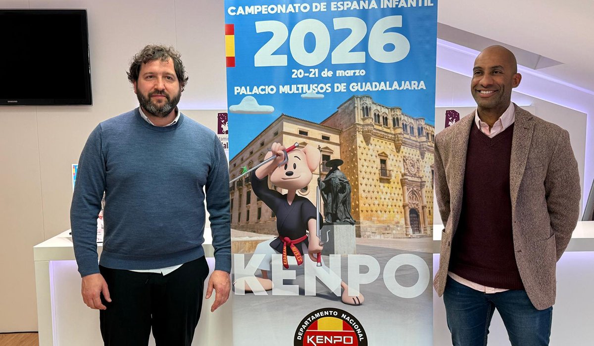 El concejal de Deportes del Ayuntamiento de Guadalajara, Armengol Engonga, y el director del Departamento de Kenpo de la Real Federación Española de Kárate (RFEK), Óscar Lafuente López, han presentado el Campeonato de España Infantil de Kenpo, que tendrá lugar este fin de semana en el Palacio Multiusos de Guadalajara, consolidando a la ciudad como sede de referencia para los grandes eventos de deporte base.