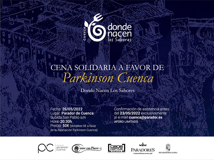 El Parador de Turismo de Cuenca y la marca de calidad Donde Nacen los Sabores han organizado una cena solidaria a favor de Parkinson Cuenca con el fin de captar fondos para esta organización y asimismo dar a conocer la importante labor que hacen.