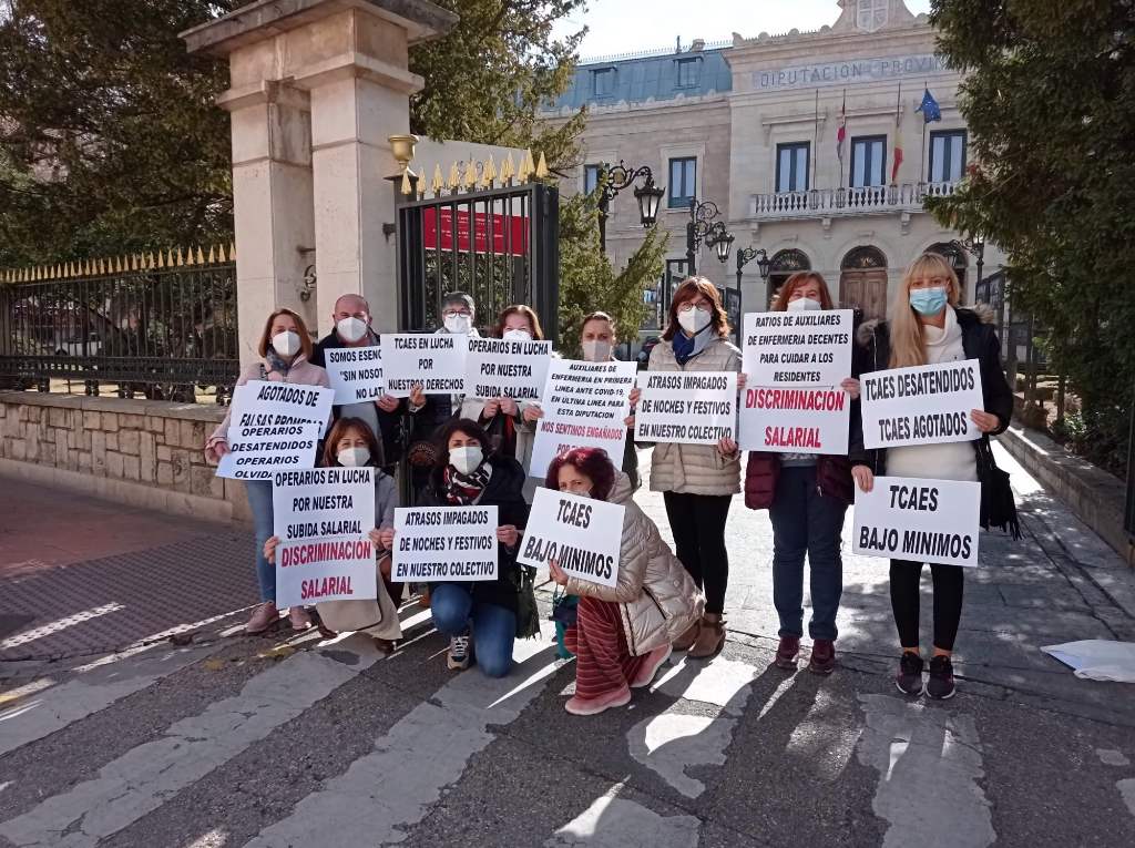 Los operarios y los Técnicos en Cuidados Auxiliares de Enfermería (TCAE) que prestan sus servicios en la residencia Sagrado Corazón de Jesús, de la diputación de Cuenca, se han concentrado hoy por enésima vez ante las puertas de la Corporación para reclamar su equiparación salarial a los colectivos laborales y profesionales similares de la entidad provincial.