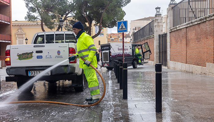 El Plan Integral de limpieza y mantenimiento de barrios del el Ayuntamiento de Guadalajara ha llegado en esta semana a la zona centro de Guadalajara, donde los servicios de limpieza están actuando ahora de manera más intensivas en barrido y baldeo de calles como Miguel Fluiters, Bardales, Plaza y calle Mayor, Plaza Moreno o doctor Ramón y Cajal, entre otras, y también con actuaciones especiales de fregado y limpieza de puntos críticos con productos químicos, etc.
