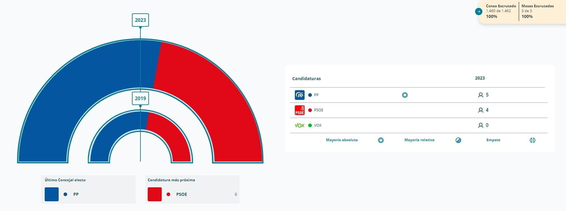 El PP ha logrado mantener la mayoría absoluta en Huete por tan solo cinco votor frente al PSOE al conseguir 536 por 531. VOX, por su parte, ha sumado 43.
