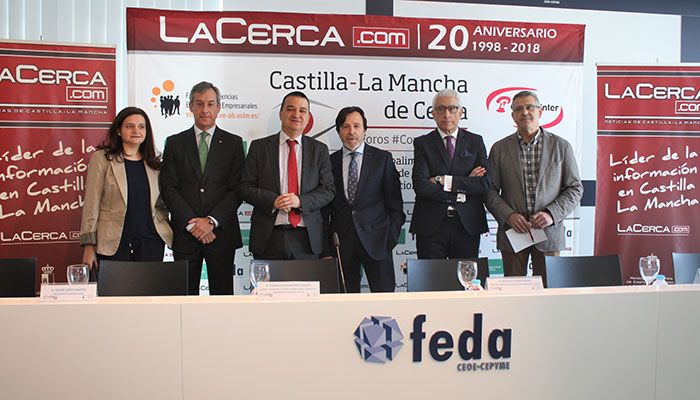 El presidente de Eurocaja Rural ha intervenido en la inauguración del foro junto al director de La Cerca, Manuel Lozano, el presidente de FEDA, Artemio Pérez, la vicedecana de la Facultad de Económicas del campus de Albacete, Ángela Triguero, y el presidente de la cooperativa Champinter de Villamalea, Abdón Catalán.