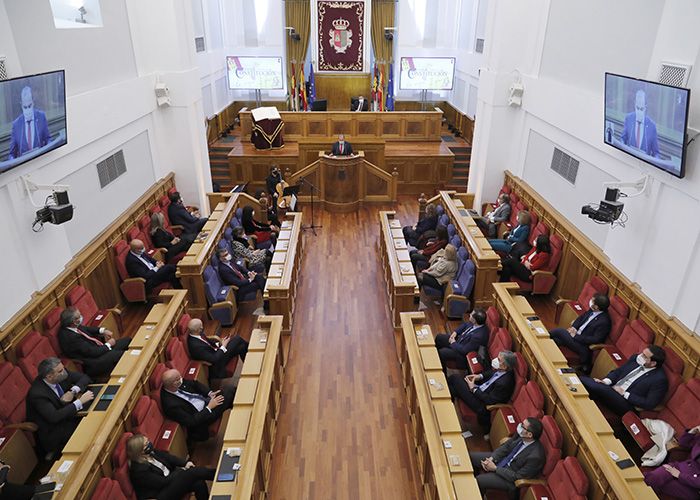 El acto de la Constitución de este año se ha celebrado entre medidas excepcionales para minimizar el riesgo de contagio por la pandemia de coronavirus, con un aforo reducido: 20 diputados y diputadas (once del Grupo Socialista, siete del Grupo Popular y dos de Ciudadanos); el vicealcalde del Ayuntamiento de Toledo, José Pablo Sabrido; el vicepresidente de Asuntos Generales, Empleo, Deportes y Promoción Turística de la Diputación Provincial de Toledo, Fernando Muñoz; el secretario general de la Federación de Municipios y Provincias (FEMP) de Castilla-La Mancha, Tomás Mañas; el subdelegado del Gobierno en la provincia de Toledo, Carlos Ángel Devia; y el Letrado Mayor de las Cortes regionales, Nicolás Conde.