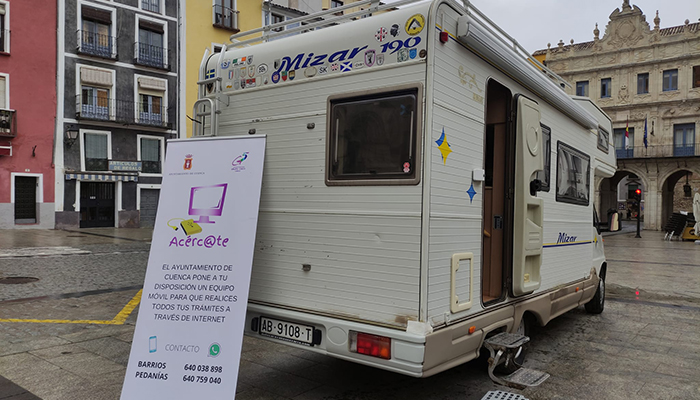 Las oficinas móviles del programa ‘Acércate’ retoman este lunes 4 de octubre su horario de invierno con el fin de ofrecer la mejor atención a la ciudadanía. Esta iniciativa, puesta en marcha por el Ayuntamiento de Cuenca dentro de la Mesa de Reconstrucción con una inversión de 110.000 euros, tiene como objetivo ayudar a la ciudadanía que tenga dificultades para realizar a través de internet determinados trámites administrativos como citas médicas o tributarias, solicitud de ayudas, certificados de empadronamiento…